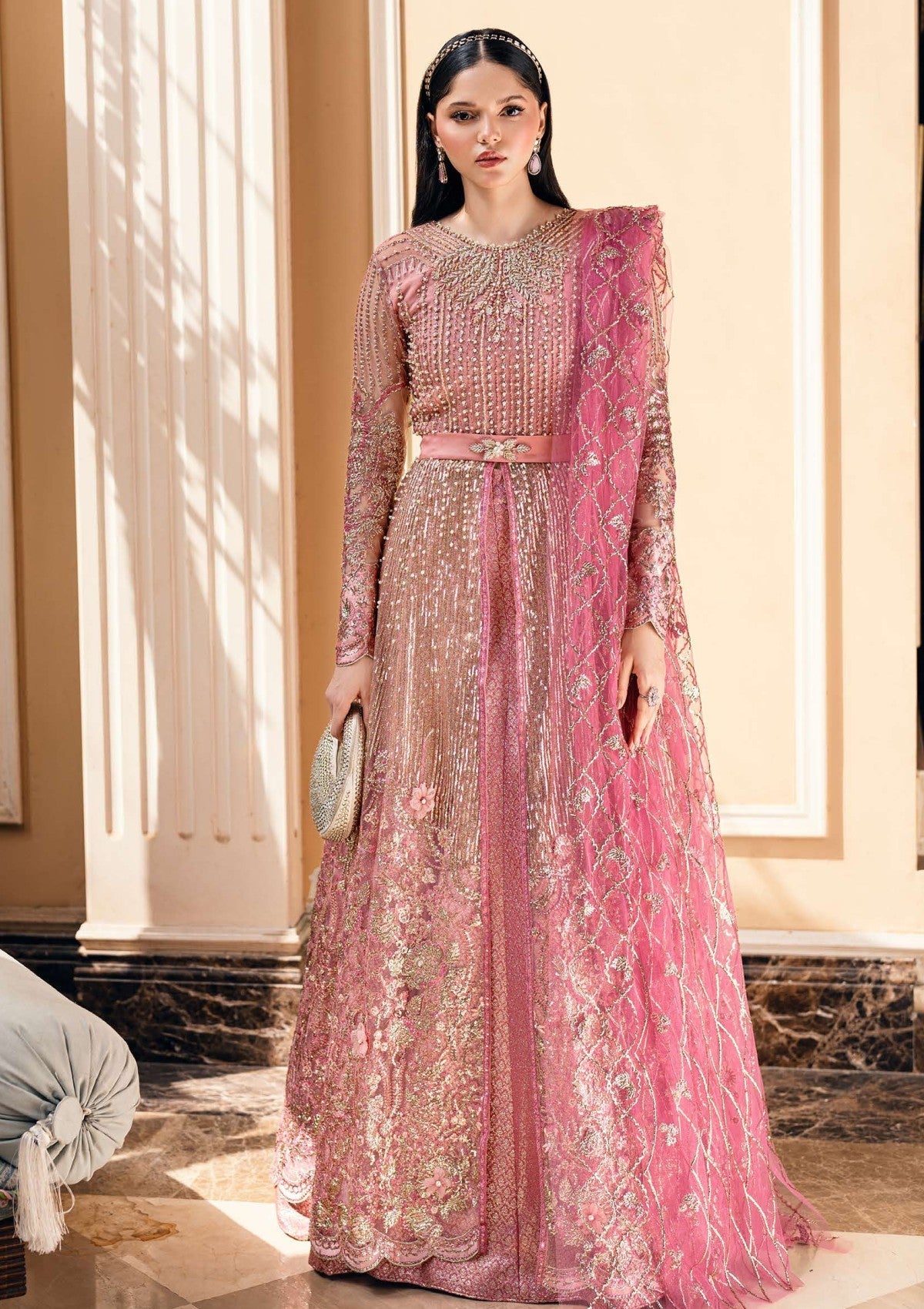 Embroidered, sequined & hand embellished front yoke (Net)