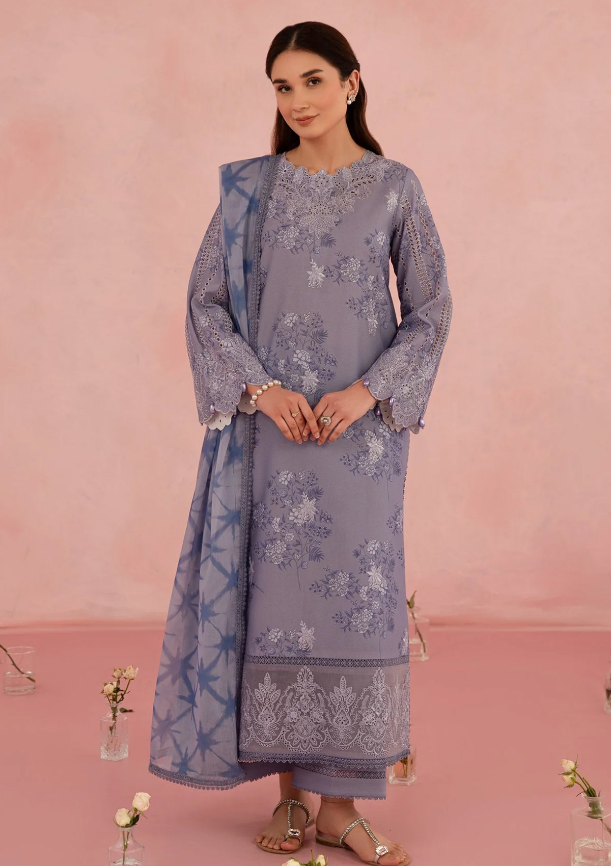 This chic grey lawn dress combines modern design with intricate craftsmanship. Featuring a printed canvas uplift, detailed embroidery, and bold sleeve patterns, it exudes contemporary elegance. The scalloped border adds a refined touch, while the plain trouser and printed chiffon dupatta complete the sophisticated look.