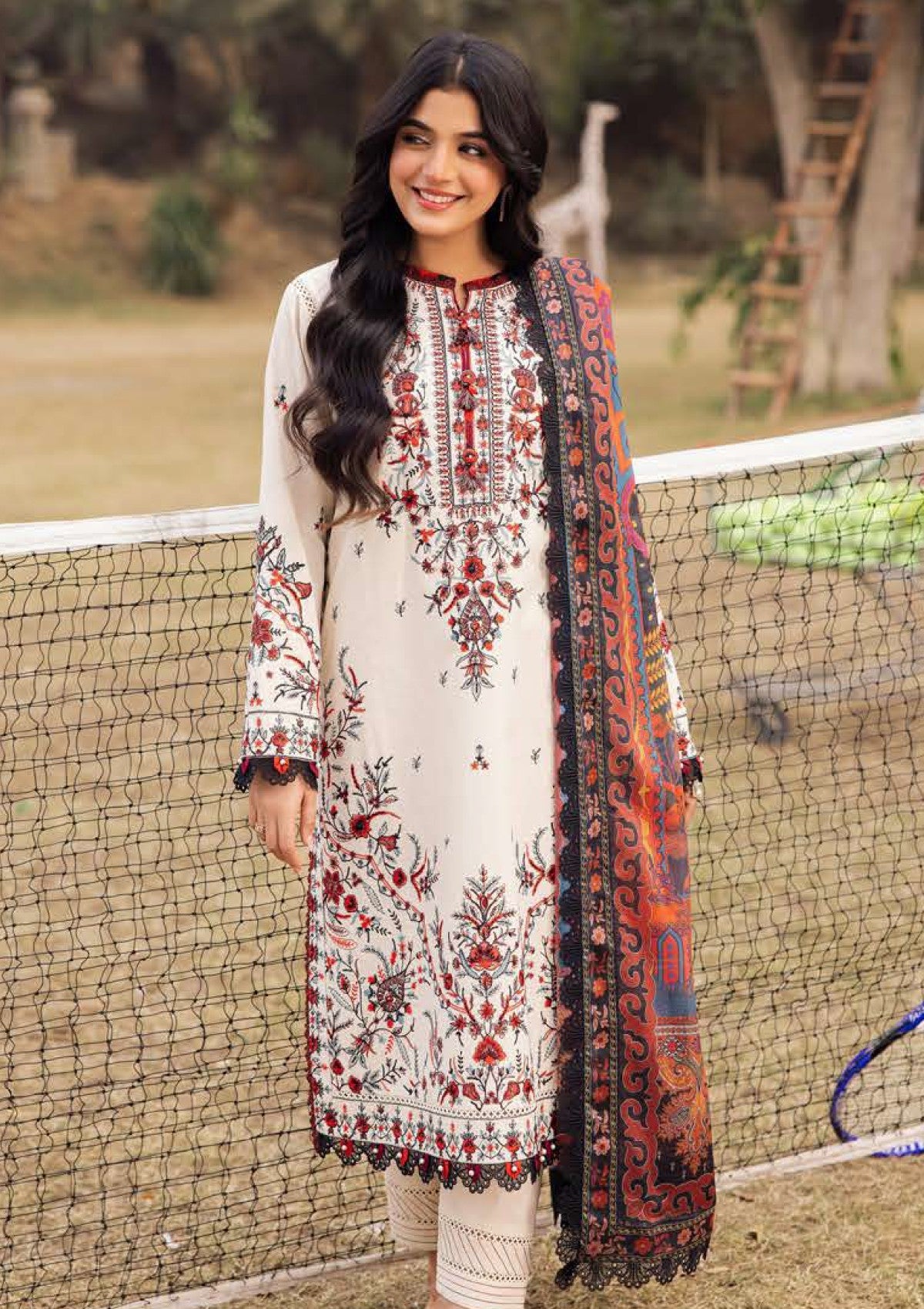 • 1 pc embroidered back with border on dyed lawn