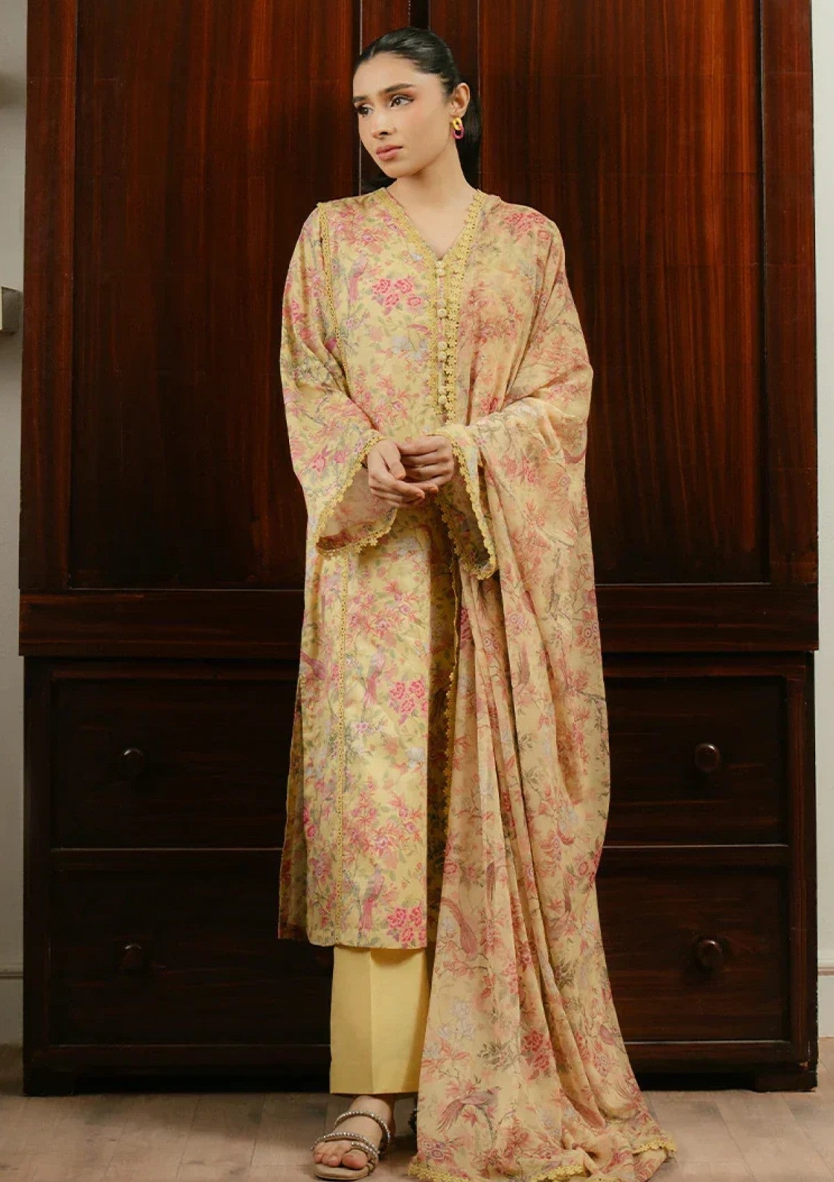 Stay stylish and comfortable this summer with our VERDANT GLOOM-3 PC PRINTED LAWN SUIT. The lawn printed shirt offers a light and breezy feel, while the cambric dyed trouser provides a comfortable fit. The chiffon printed dupatta adds a touch of elegance to your look. Perfect for any occasion, this suit is a must-have for your wardrobe.