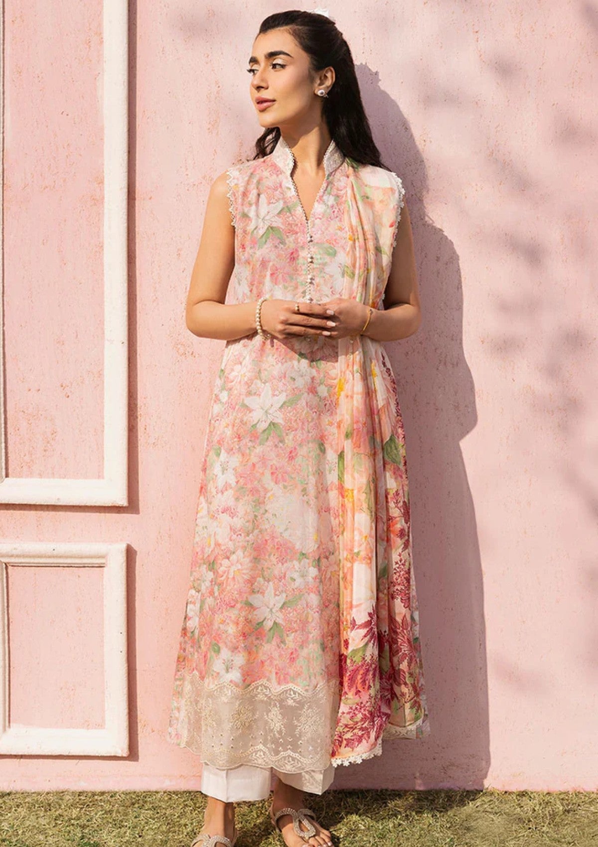 This ALMOND PINK-3PC PRINTED LAWN SUIT is a perfect blend of elegance and comfort. The lawn printed shirt features 40" and 100" embroidered patti for a stylish touch. The cambric dyed trouser adds to the overall comfort, while the silk printed dupatta completes the look with a luxurious feel.