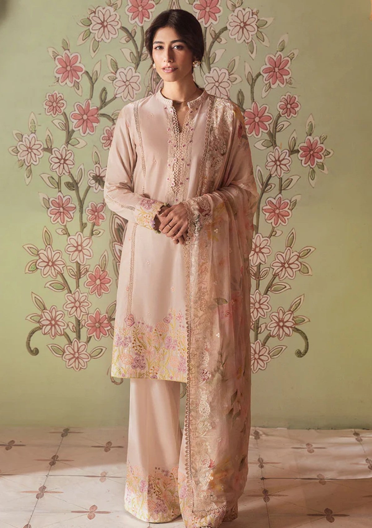 This 3-piece FLORAL TIE LAWN SUIT features a printed and embroidered shirt with a 60" patti for sleeves and a 40" patti for hem, a cambric dyed trouser with a 60" embroidered patti, and a chiffon printed dupatta. Elevate your style with this elegant and intricately designed suit.
