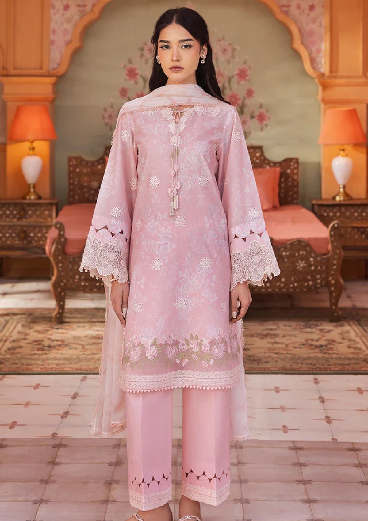 This 3-piece FLORAL TIE LAWN SUIT features a printed and embroidered shirt with a 60" patti for sleeves and a 40" patti for hem, a cambric dyed trouser with a 60" embroidered patti, and a chiffon printed dupatta. Elevate your style with this elegant and intricately designed suit.