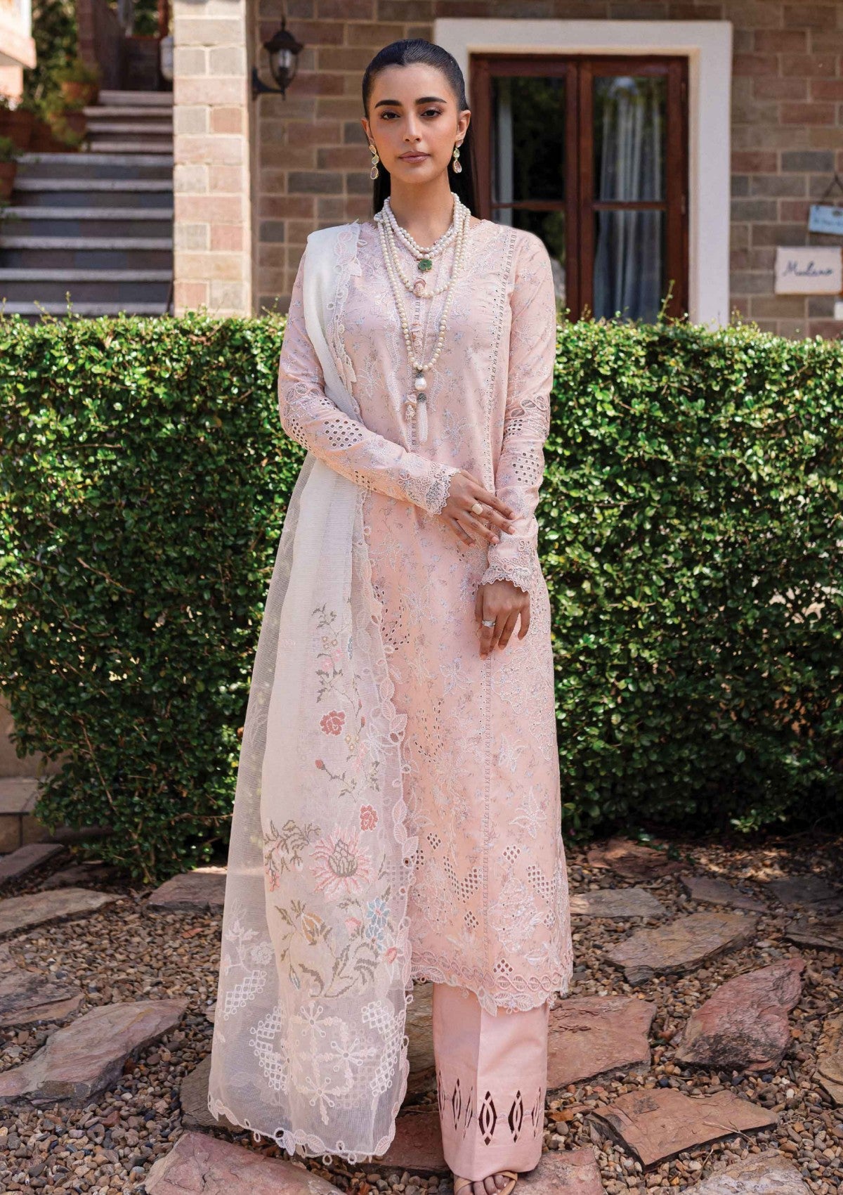 Chikankari Embroidered Dupatta pallu
