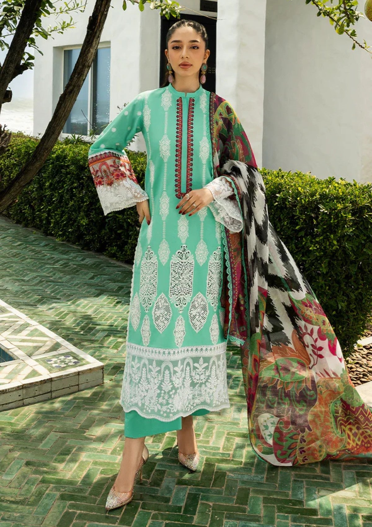 This mint green creation exudes a subtle yet captivating charm, with timeless chikankari embroidery gracefully adorning the shirt. The sleeves, with their meticulously crafted detailing, become a focal point, showcasing the artistry of the design. The soft, refreshing hue complements the intricate white work, creating a look that is both feminine and refined. The beautifully coordinated dupatta completes this ethereal ensemble, making it an ideal choice for those seeking a graceful and sophisticated style.